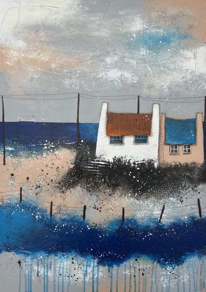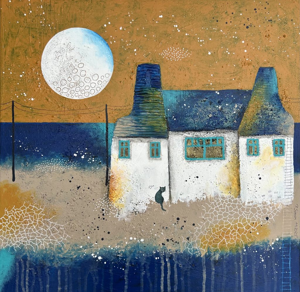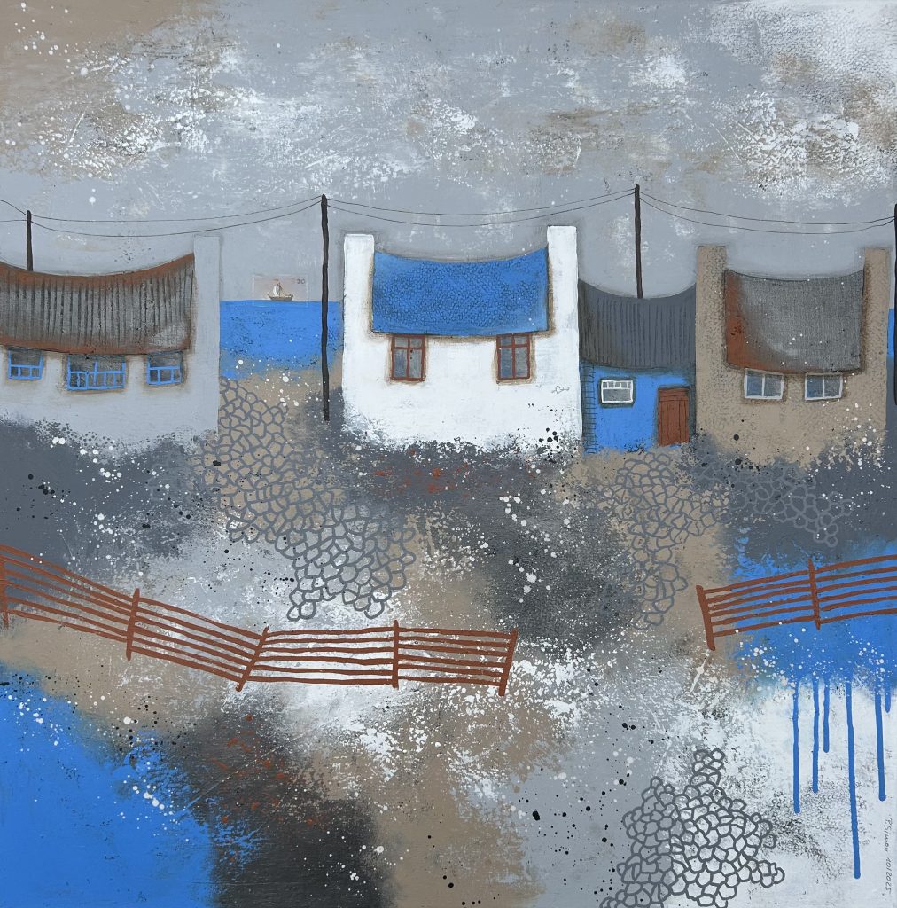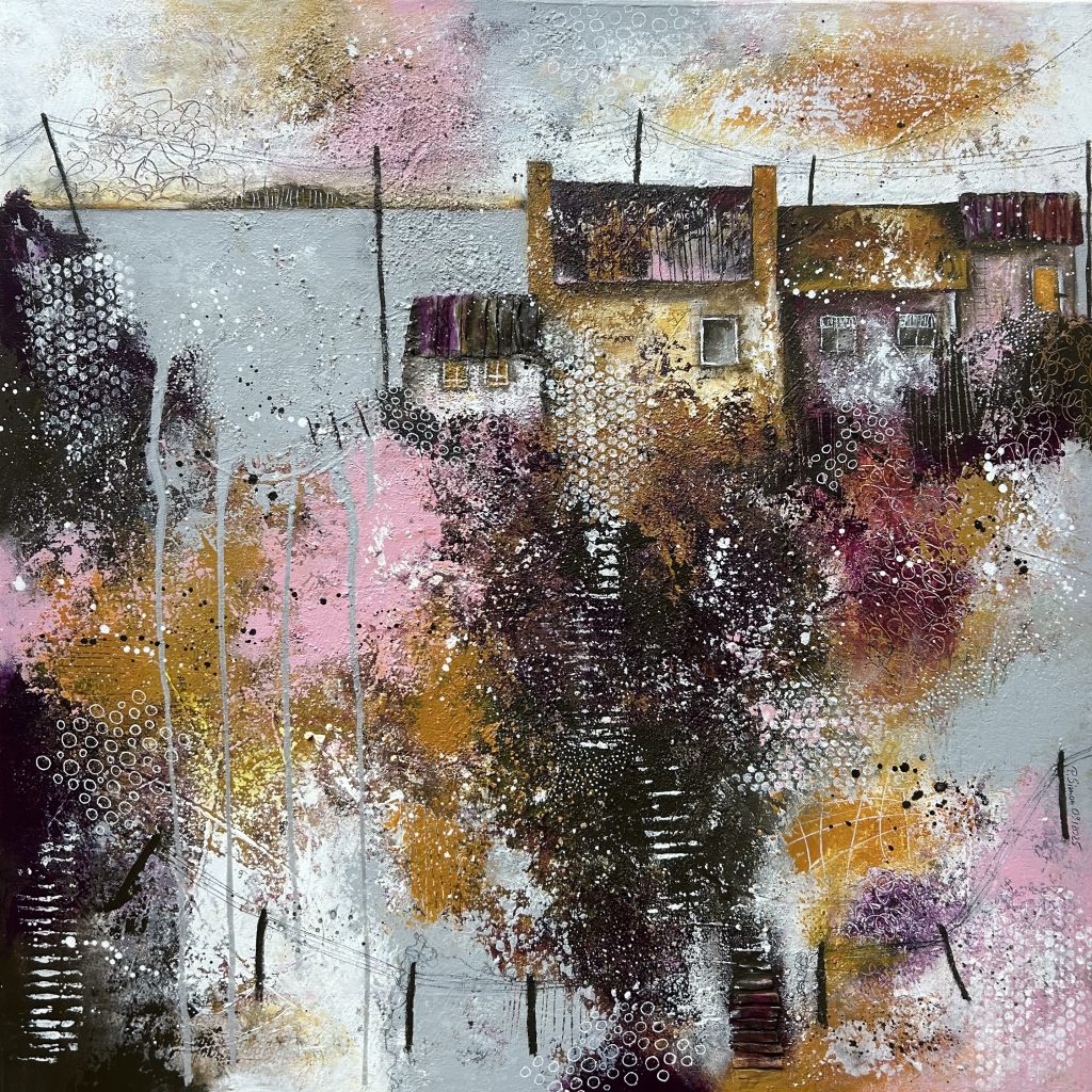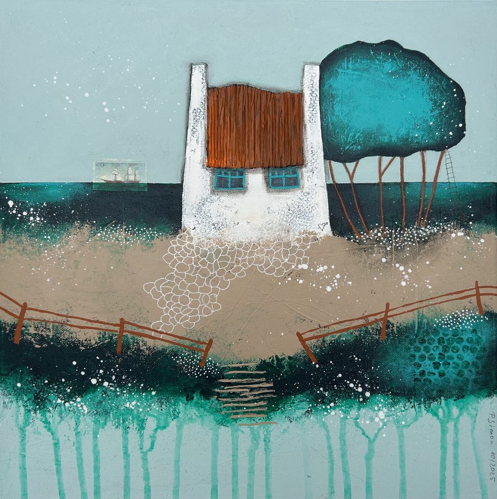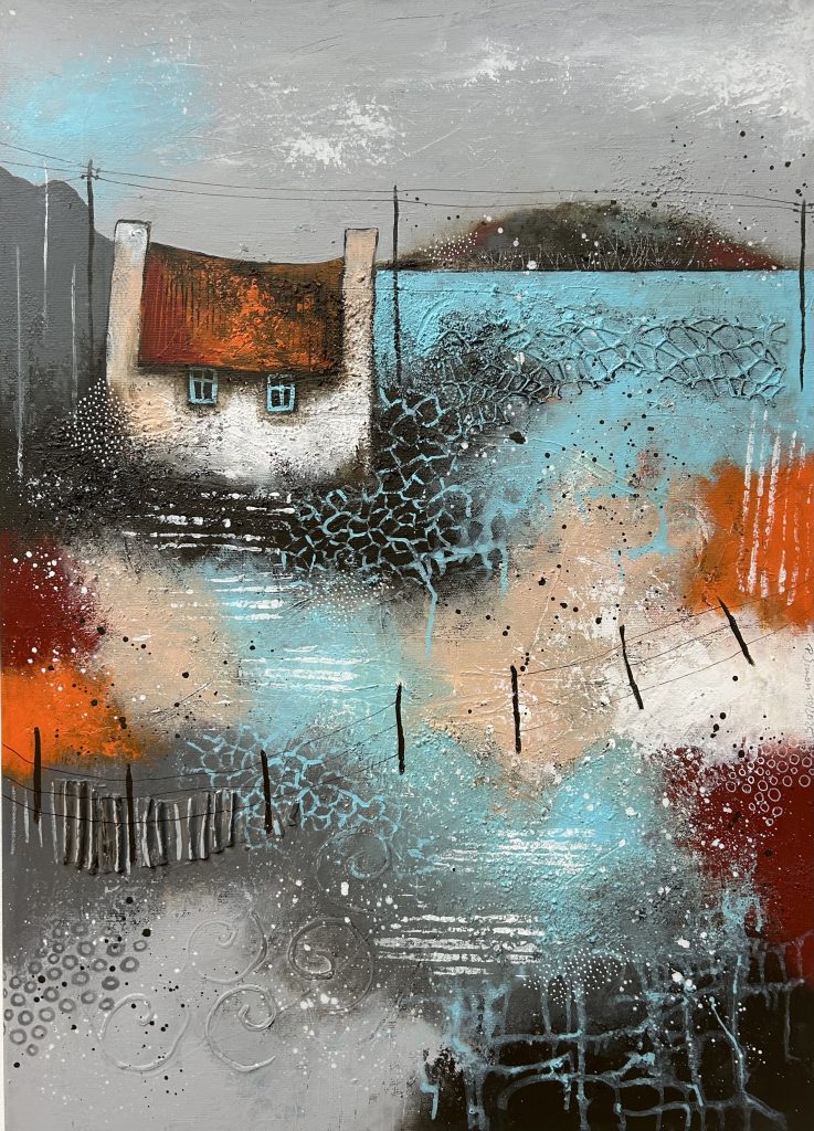 60×40 – Acryl auf Leinwand, kleines Keramikhäuschen